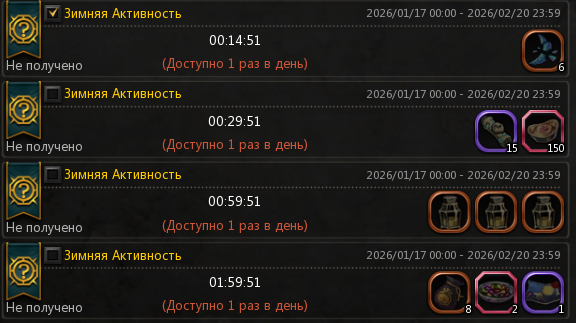 - До Глобального обновления в игре доступны: Зимний Календарь и Зимняя Активность (подробнее ниже)