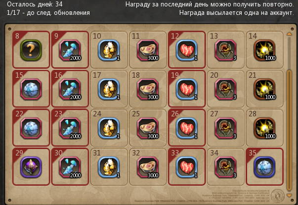 С 1 дня Календаря и до Глобального обновления Вам доступно 7 последовательных заданий с интересными наградами: